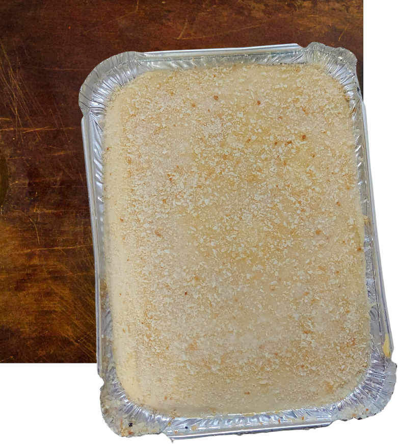 Nuestra alternativa de la clásica combina carne picada salteada con tomate y especias cálidas, berenjena caramelizada y una suave salsa bechamel, coronada con pan rallado y un toque de parmesano, lista para gratinar.