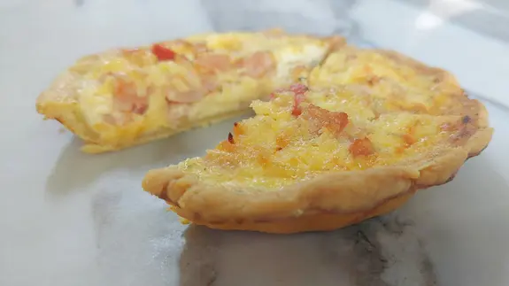 Nuestra reinterpretación de la clásica quiche de atún, con un relleno cremoso, abundantes trozos de atún, fina cebolla morada y nuestra mezcla especial de condimentos, todo sobre una masa crocante y mantecosa. Una receta inspirada en la tradición, reconfortante, de textura suave y sabor equilibrado en cada bocado..